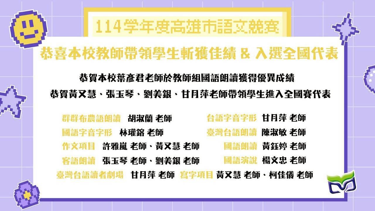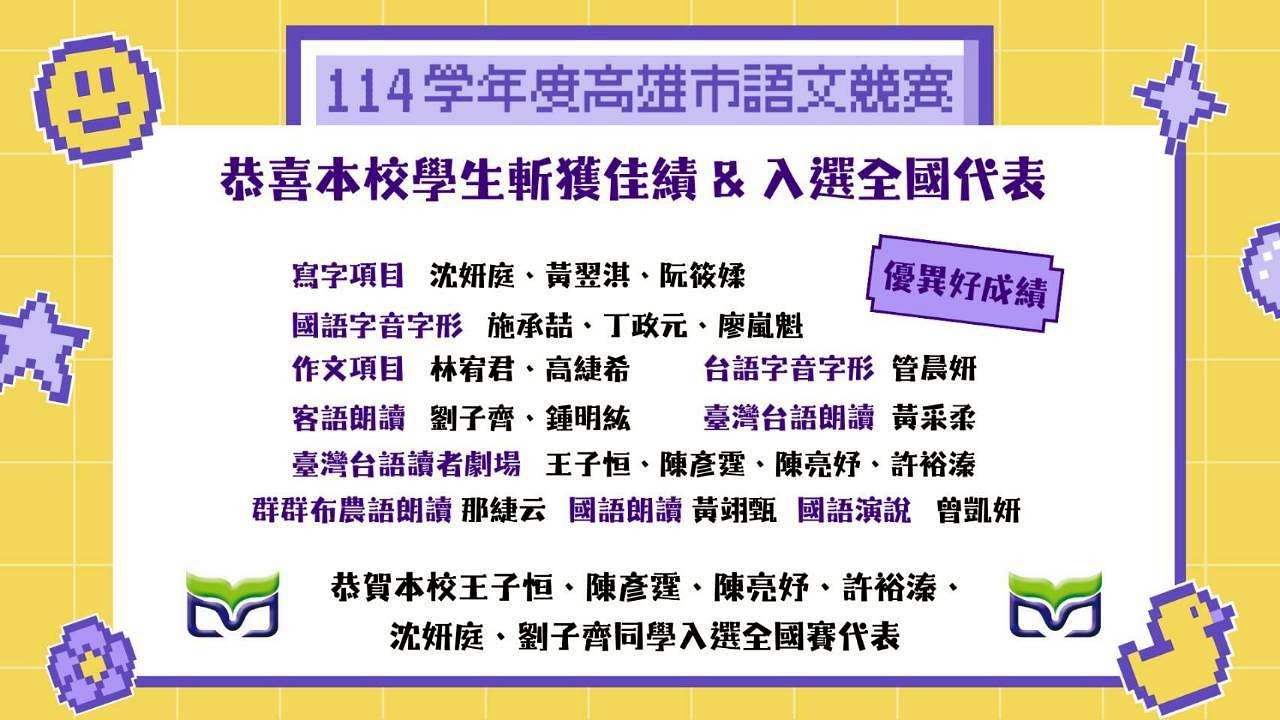 教務處:五育均衡在陽明,114學年度高雄市學生美 ...